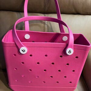 This is a nice rubber beach tote. Medium size 12x14 two rubber handles.