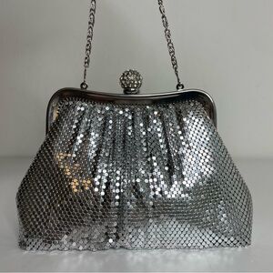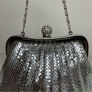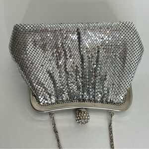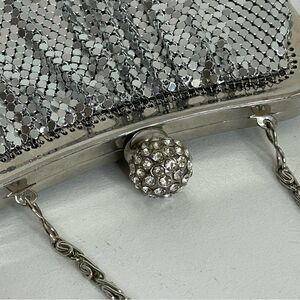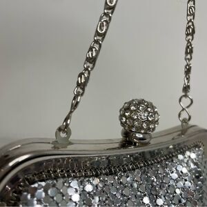 COPY - KATE LANDRY silver metallic mesh rhinestone evening purse formal event