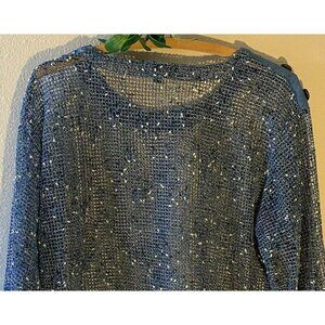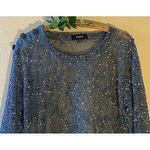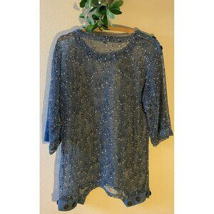 Kaktus Crochet Open Knit Top 3/4 Sleeve Blue Medium Buttons Lagenlook Boho