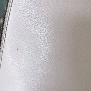 Like new condition- there is the smallest ink dot on the front that really is only visible if your looking for it. Also a tiny mark on bottom. Other than that the bag is gorgeous but I will discount due to the marks.