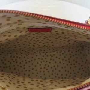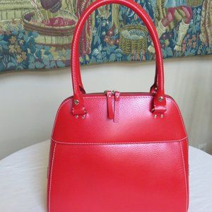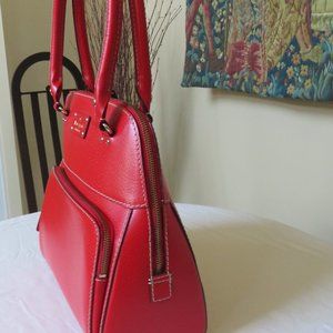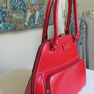 This is a red leather satchel by Kate spade , stylish shoulder bag