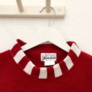 Chenille Knit with contrasting yarn/thread that creates the Santa