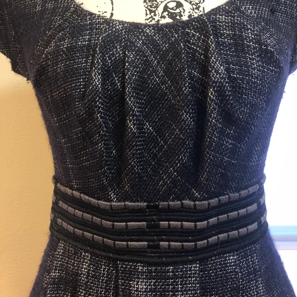 NAVY/DARK GREY/BLACK TWEED WITH SELF BELT AND POCKETS