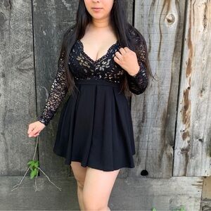 Stylish black dress with intricate lace detailing. Ideal for special occasions.