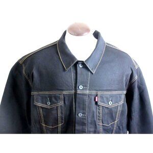 Levi's Men's Button Front Black Denim Unlined Trucker Jean Jacket Size 4XL NWT. Levi's Strauss & Co. Men's button front unlined "Trucker" style jacket. Black in color with gold accent stitching. Brand new, with all original tags in size 4XL. 4 front pockets, 2 at the top that button. This classic jacket is super versatile and will never go out of style! Levi's style # 071580013. ($98.00) Top to bottom this jacket measures 31 inches. Across the chest, from underneath armpit to armpit this jacket measures 30 inches. Guaranteed authentic with Fast U.S. shipping to your door. Please message us with any questions and be sure to visit our store for more great stuff! Thanks!