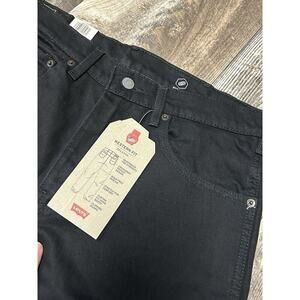 Introducing a pair of new with tags Levi's Western Fit men's jeans in size 32 x 34 with a boot leg style. These jeans feature a 5-pocket design with a zip closure and are made of 74% cotton, 13% polyester, 12% polyamide, and 1% elastane. The dark black color is perfect for all seasons, including winter, summer, fall, and spring.