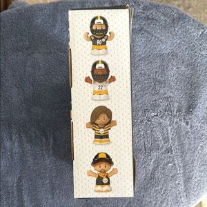 Set of four Little People figures in Steelers uniforms. Perfect for fans and collectors.