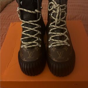 Elegant Louis Vuitton Boots (Authentic) Beautiful boots! was a gift, too tight. 1 dust bag missing. Comes with box, receipt where purchased, authenticity cards. Box corners are damaged. Will not last! (No low ball offers).