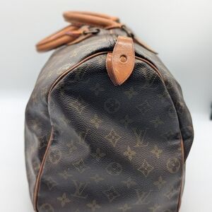 This classic Louis Vuitton travel bag is perfect for those who appreciate luxury and practicality. A must-have for stylish travelers!