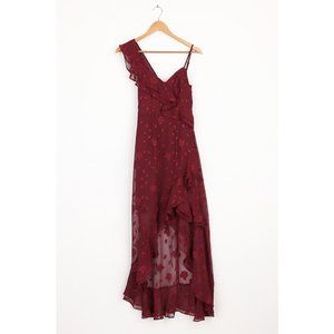 COPY - Lulus 🤍 Forever Be Burgundy Floral Ruffled Maxi Dress