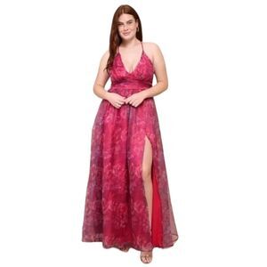 COPY - Lulus Romance That Wows Magenta Floral Print Organza Maxi Dress Size Med…