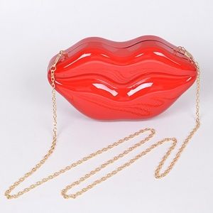 Lips Detachable Hand Bag Clutch With Chain Attachment