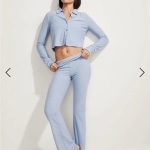The fabric: brushed and supersoft ribbed with a touch of comfy stretch. The fit: Cropped and cozy, this cardigan has a retro polo collar and long fitted sleeves with slits on the cuffs. Pairs perfectly with the matching tank and leggings, or try it with easy jeans.