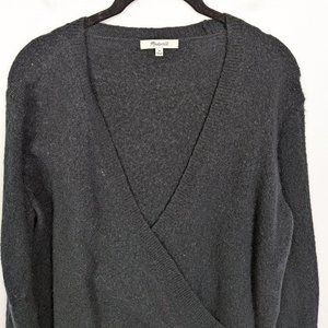Madewell Wrap-Front Pullover Sweater in Coziest Yarn in Black. Made of a blended fabric that includes wool and alpaca. Pre-owned, excellent, no flaws noted.