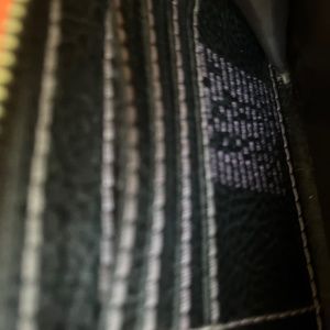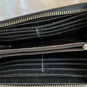 Black Matt&Nat women's billfold/wallet. Vegan Leather, Zipper works inside and out. 8"x4", clean inside, Authentic with positivity message printed inside