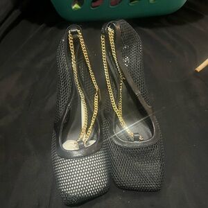 Two pairs of mesh heels tan and black 3.5 inch heel two separate pairs for sale chain detail is detachable