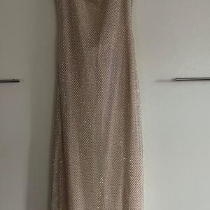 Worn once for a bachelorette trip - GORGEOUS STUNNING diamanté dress by Meshki -- semi sheer but not TOO sheer, she's very classy and fits like a dream! TTS, I can't say enough good things about this dress. If you want to feel like a movie star, buy her! Completely sold out on their website, bought new for $249
