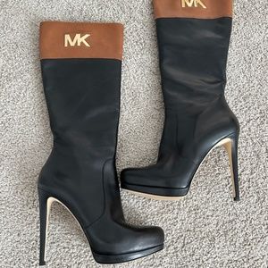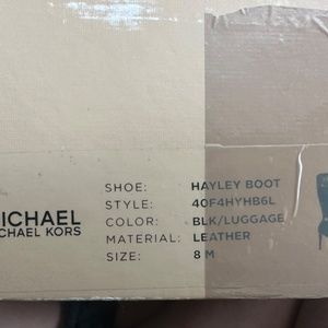 Brand new Michael Kors Hayley boots. Never worn. 5” heel. I have the original box but it’s been taped up from a move. They were a gift, but the heels were too high for me to walk in.