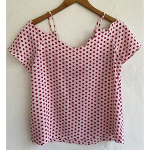 Monteau Women's Cold Shoulder Polka Dot Blouse Top Large White Red Flowy Short sleeve