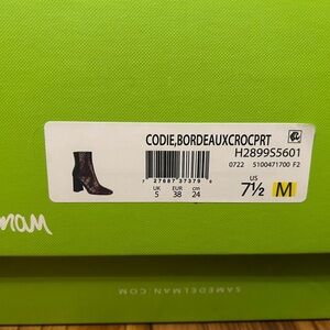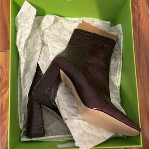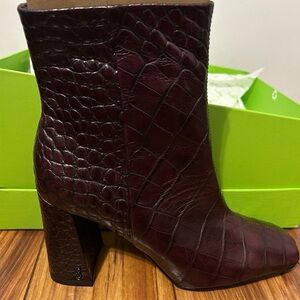COPY - NIB SAM EDELMAN Codie Bordeaux croc square toe bootie. Size 7 1/2 M