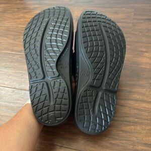 Stylish black slides by OOFOS. Ideal for everyday comfort. These are brand new with out tag, but it has the elastic strings still attached. They are a European size 43 and a men’s size 10 or a women’s size 12. OOFAS are one of the most comfortable sandals for summer. All of my items are well cared for and come from a smoke free home.
