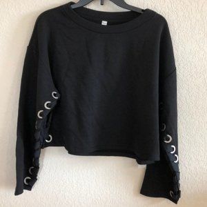 Sweater, fitness, alo, pullover, black, tie up, lace up