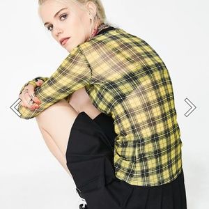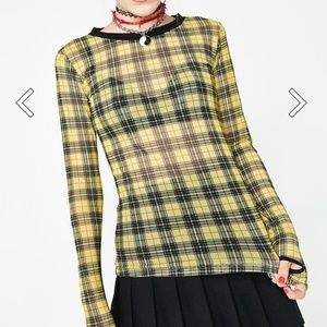 COPY - NWT Current Mood Sheer Yellow & Black plaid top with thumb holes SM doll…