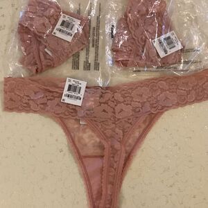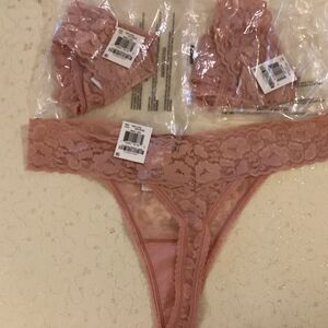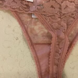 New with tags. INC International Concepts, a Macy’s brand women’s size XL antique rose pink colored lacy thong panties. This is a set of 3. They are a blend of 88% nylon and 12% spandex and are machine washable on a delicate cycle.