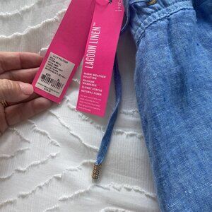 NWT Lilly Pulitzer Taron Lagoon Linen Pant - Size XL. These are Beckon Blue x Sea Salt colorwith a small cuff size XL.