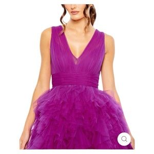 COPY - NWT MAC DUGGAL RUFFLED CAP SLEEVE V-NECK A LINE TULLE DRESS Fuchsia