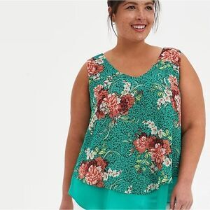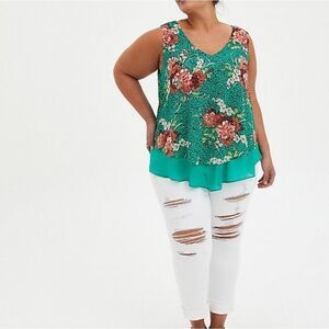 COPY - NWT Green floral double layer Chiffon tank. M-L