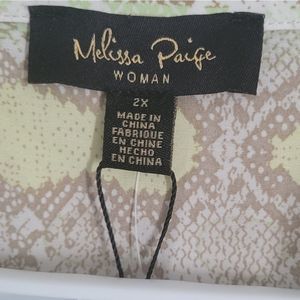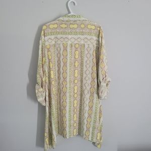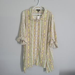 This beautiful new with tags neon polyester and spandex button up could be styled as a traditional blouse, or possible tunic with tights