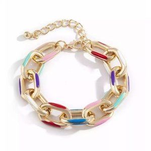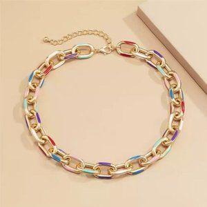COPY - Necklace & Bracelet set chain gold rainbow retro boho bohemian multicolo…