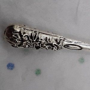 The bat is approximately 2" including the double-jump ring and lobster clasp. The metal is Tibetan Silver.