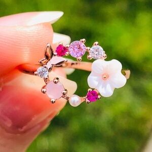 COPY - New 18K Rose Gold Flower Butterfly Circle Ring