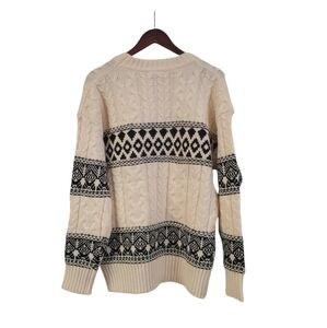 New With Tags Revolve Line & Dot Women's Cable Knit Fair Isle Oversized Relaxed Fit Sweater . Crew Neck , Mid Weight , Cozy And Warm . Cream & Black . Length 30 in , Pit to pit 24 in .