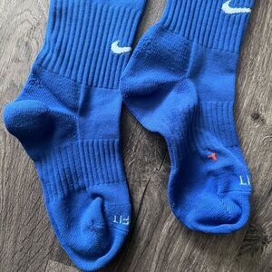Comfortable blue crew socks with iconic Nike logo. Perfect for sports