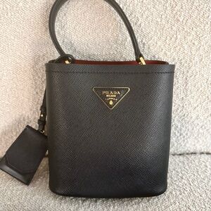 PRADA Saffiano Leather Pannier Black Bag [S]