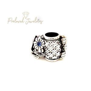 Authentic Pandora Cz Owl Charm with Blue CZ Eyes.