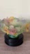 This exquisite floral glass bowl features delicate green and yellow hues, perfect for adding a touch of elegance to any home decor. The intricate flower design brings a natural charm to your space.one small paint run at Base as pictured