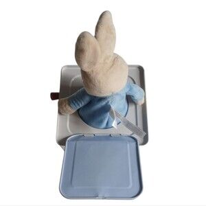 A cute metal music box plays a cheerful tune as the plush Peter Rabbit pops up with excitement.