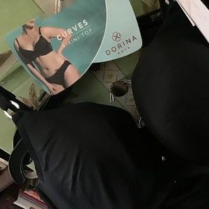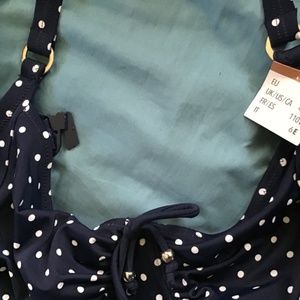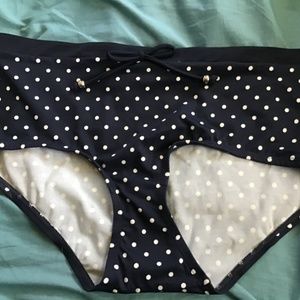 Navy blue with white polka dot, sizes for top fluctuate like bra size on page. but bottoms need to be purchased separate for size selection . These are great quality underwire with protection but not padded.Come with large or XL Control top bottom included!