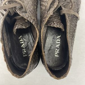 COPY Prada Mens Brown Leather Braided Design Round Toe Derby Dress Shoes Sz 12