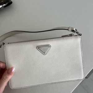 Prada saffiano mini leather bag in white. 100% authentic! Paid $1500 us dollars. In great condition. No box. Not available online anymore.