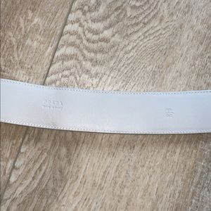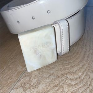 Prada belt can be worn as a high waist or hip belt. Only worn a few times I made an extra hole because it was too big on my waist. Keep in mind there is an extra hole made. Showed in the final photo. Please review photos, the hole does not show if you close on it.