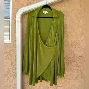 COPY - Princess Polly Green Wrap Dress Womens Size 12 Long Sleeve Mini Tie Waist