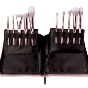 Own every angle! Get the complete 10-piece cruelty-free Pro Brush assortment containing everything you will need to create a pro-level look. Arranged in a stylish and functional zippered carrying case, this set is perfect for everyday use and travel. Ultra-soft densely packed synthetic bristles for the precise application of cream and powder cosmetics for face and body. Ergonomic handle ensures a comfortable and lightweight hold. The bundle includes: Precision Flat Face Brush, Fluffy Blending Brush, Tapered Highlighting Brush, Blush Brush, Precision Setting Brush, Large Powder Brush, Precision Foundation Brush, Flat Contour Brush, Tapered Blending Brush, Dome Pencil Eye Brush.