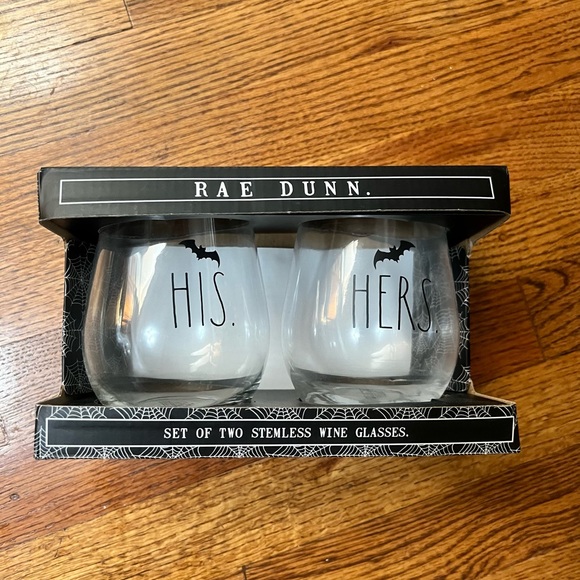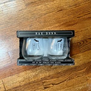 Rae Dunn Halloween Spooky Stemless Wine Glasses his and hers