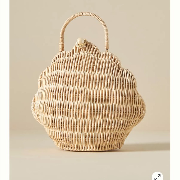 A beautiful rattan shell basket. Cute decor piece or use as a bag or for your babies to play with.