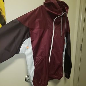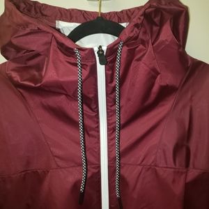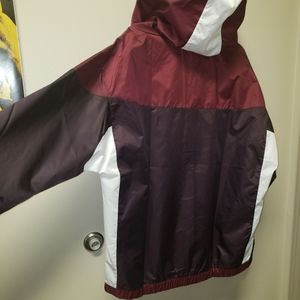 Waterproof, windbreaker, full zipper, brand new, no cuts, tears, or scuffs. Fully hood with pull strings. Elastic arm and waist cuffs.